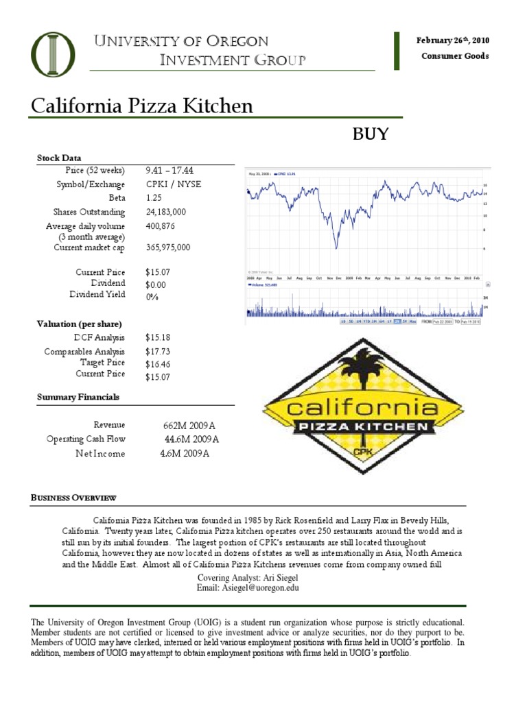 Cpki California Pizza Kitchen Inc In Business Finance By